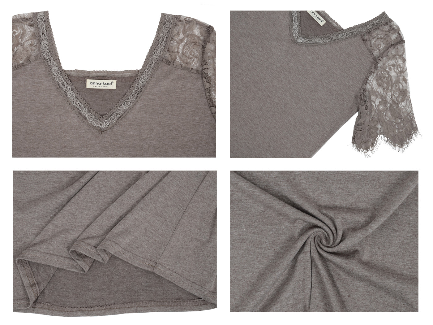 Lace Short Sleeve T-Shirt V Neck Cotton Summer Casual Tops Tee Shirts