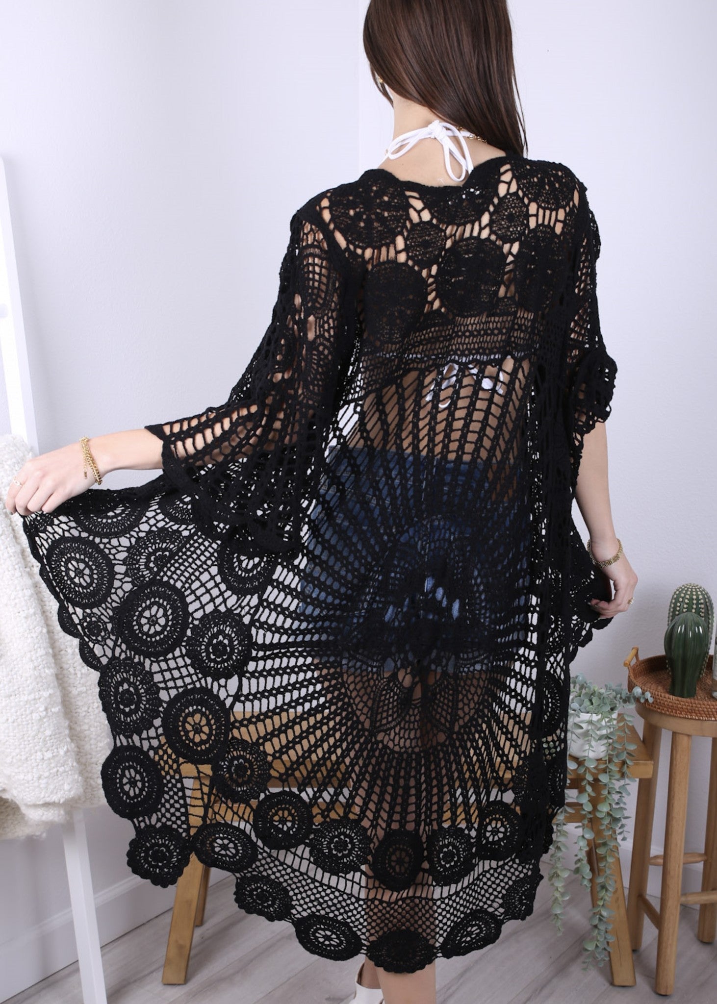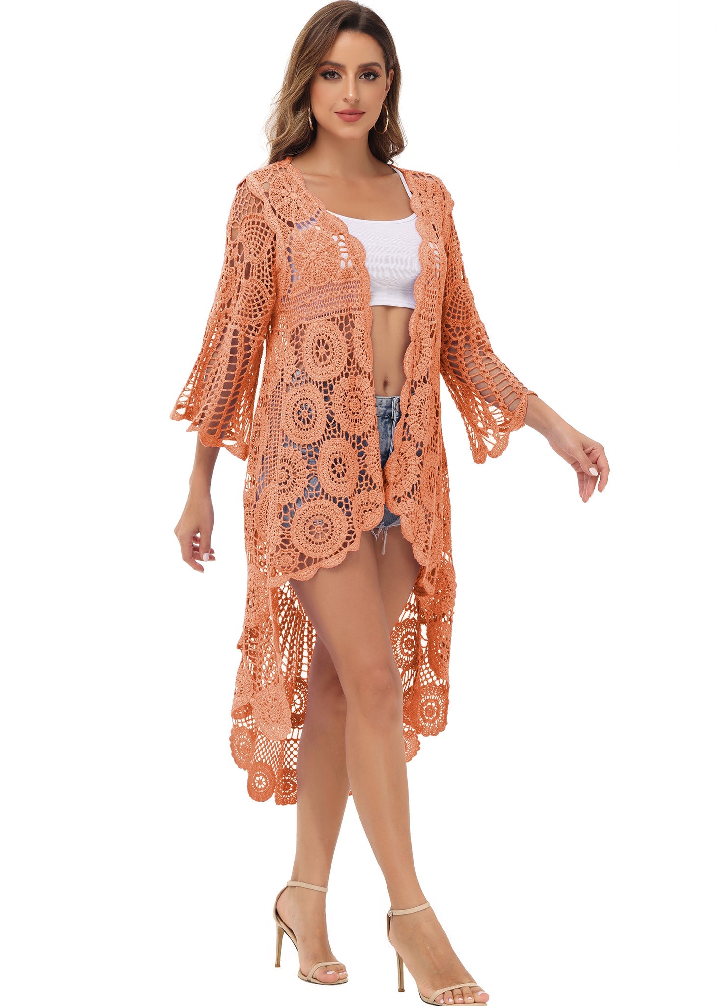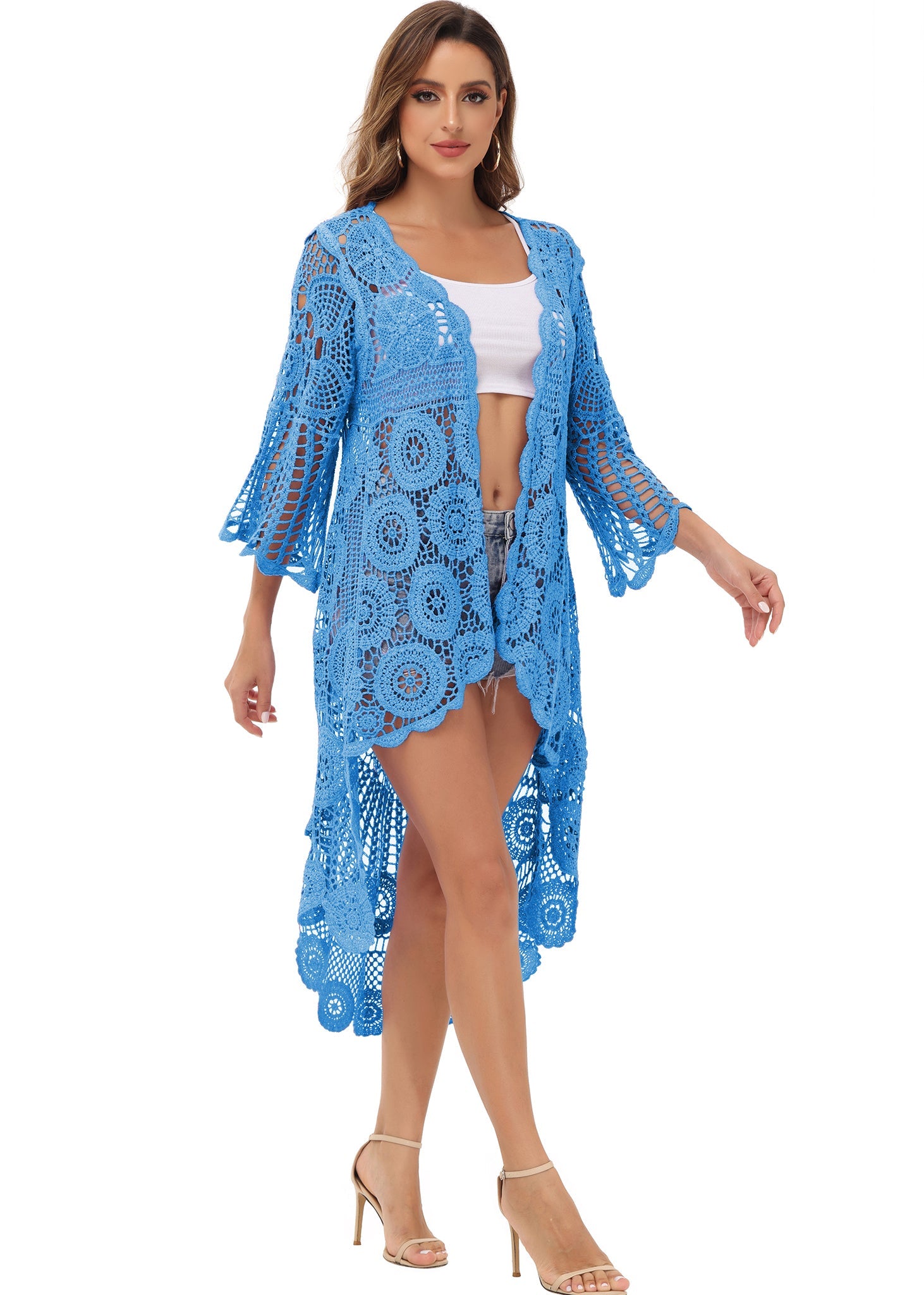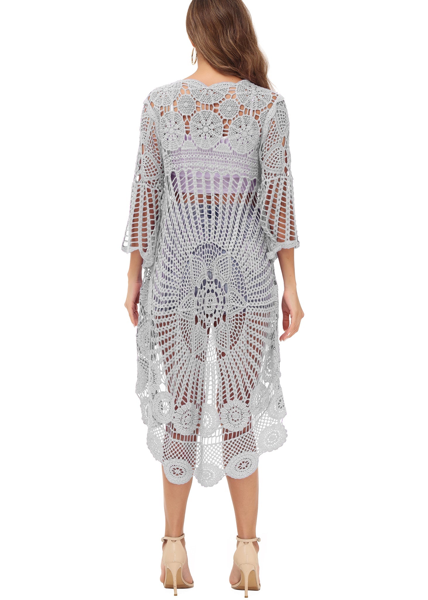 - UNIQUE DESIGN -- Lightweight open front short sleeve cover up cardigan featuring cut out flower lace design.This bohemian, floral detailed style cardigan featuring an asymmetric hem design, large arm cutouts and loose oversized fit is flattering for all body types.