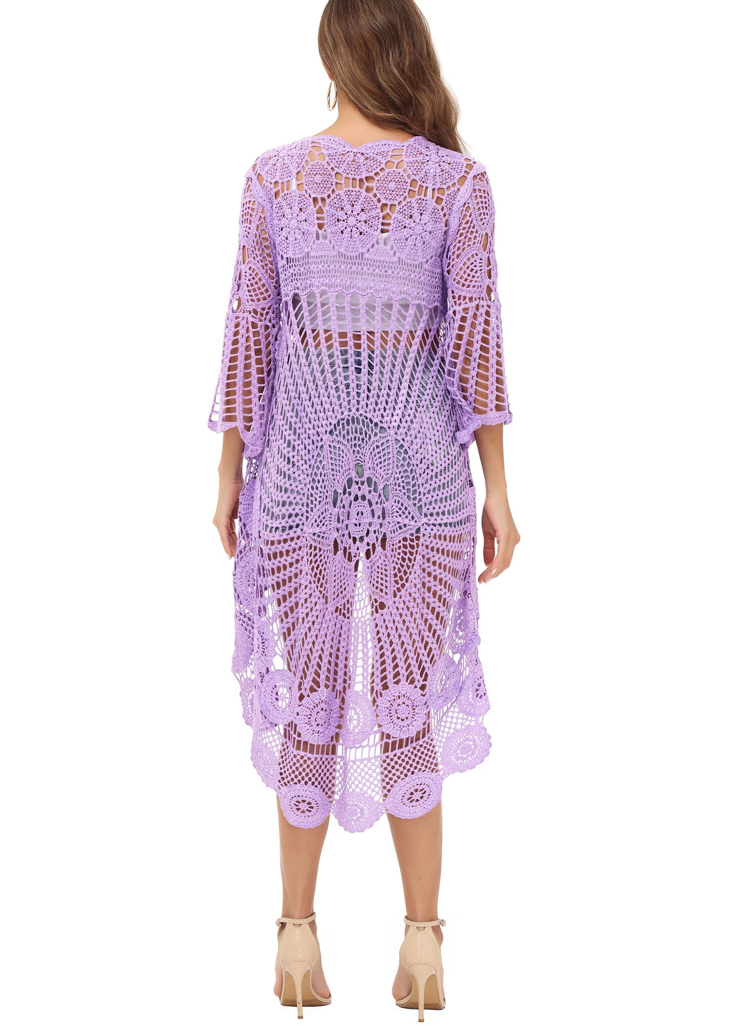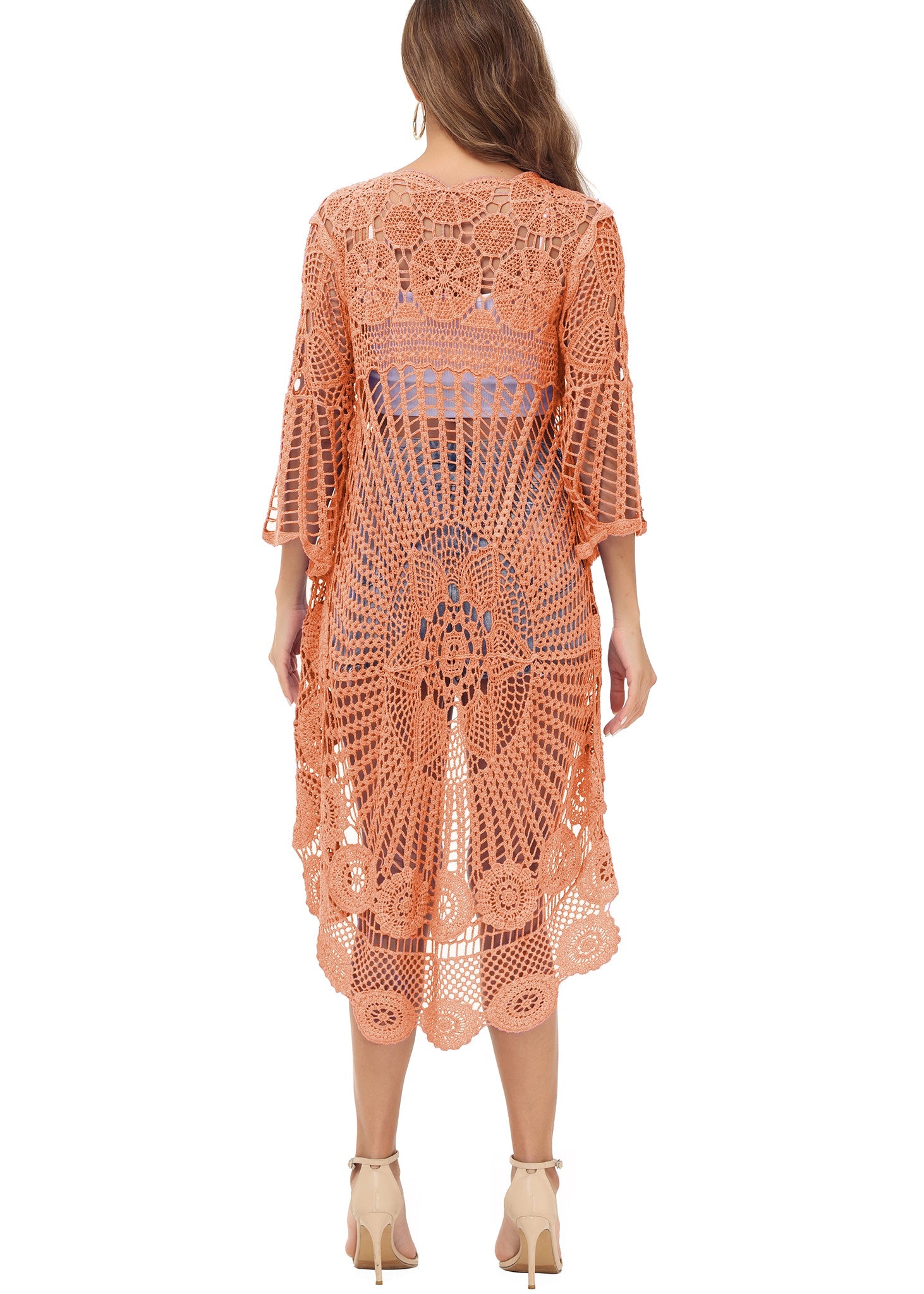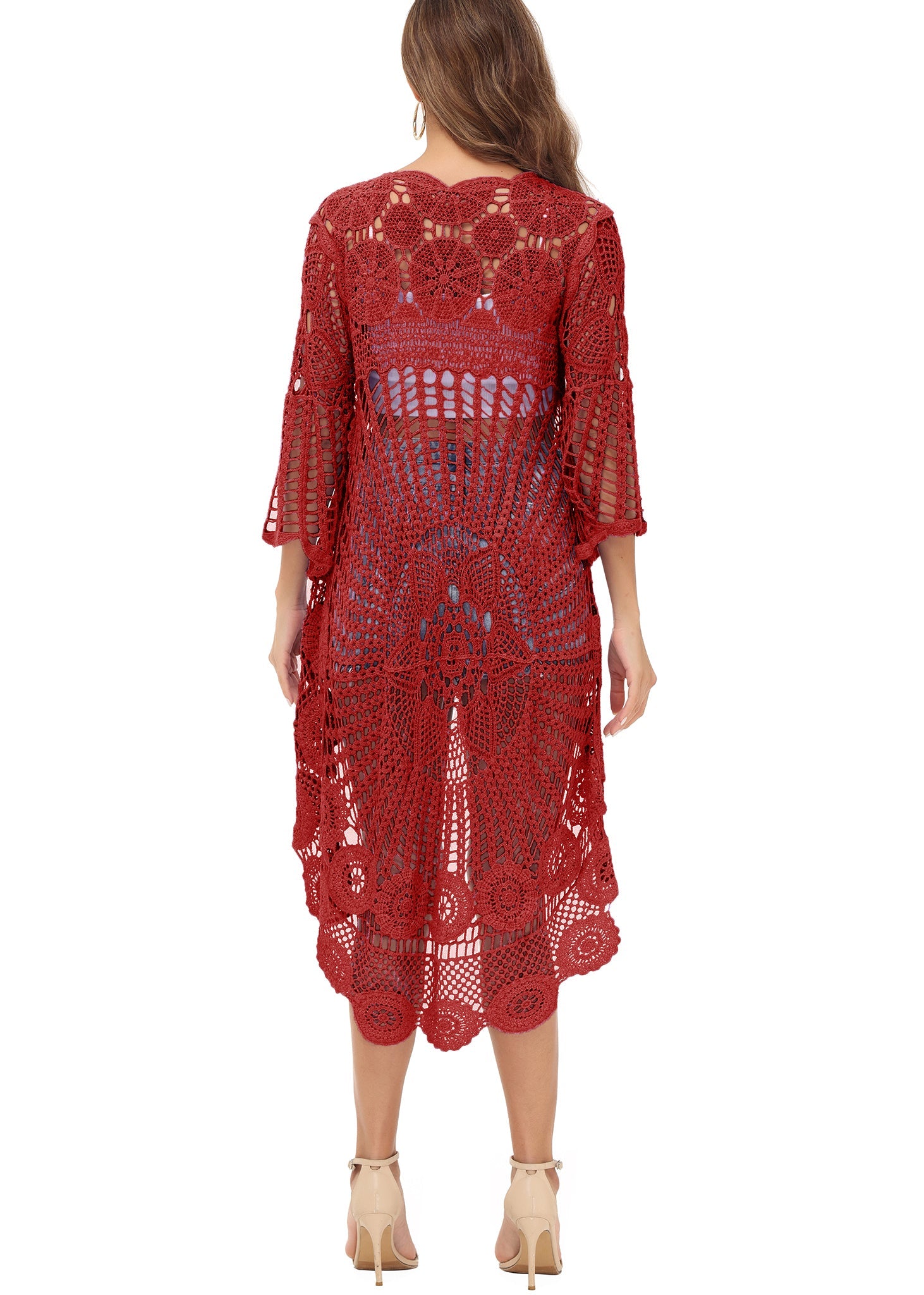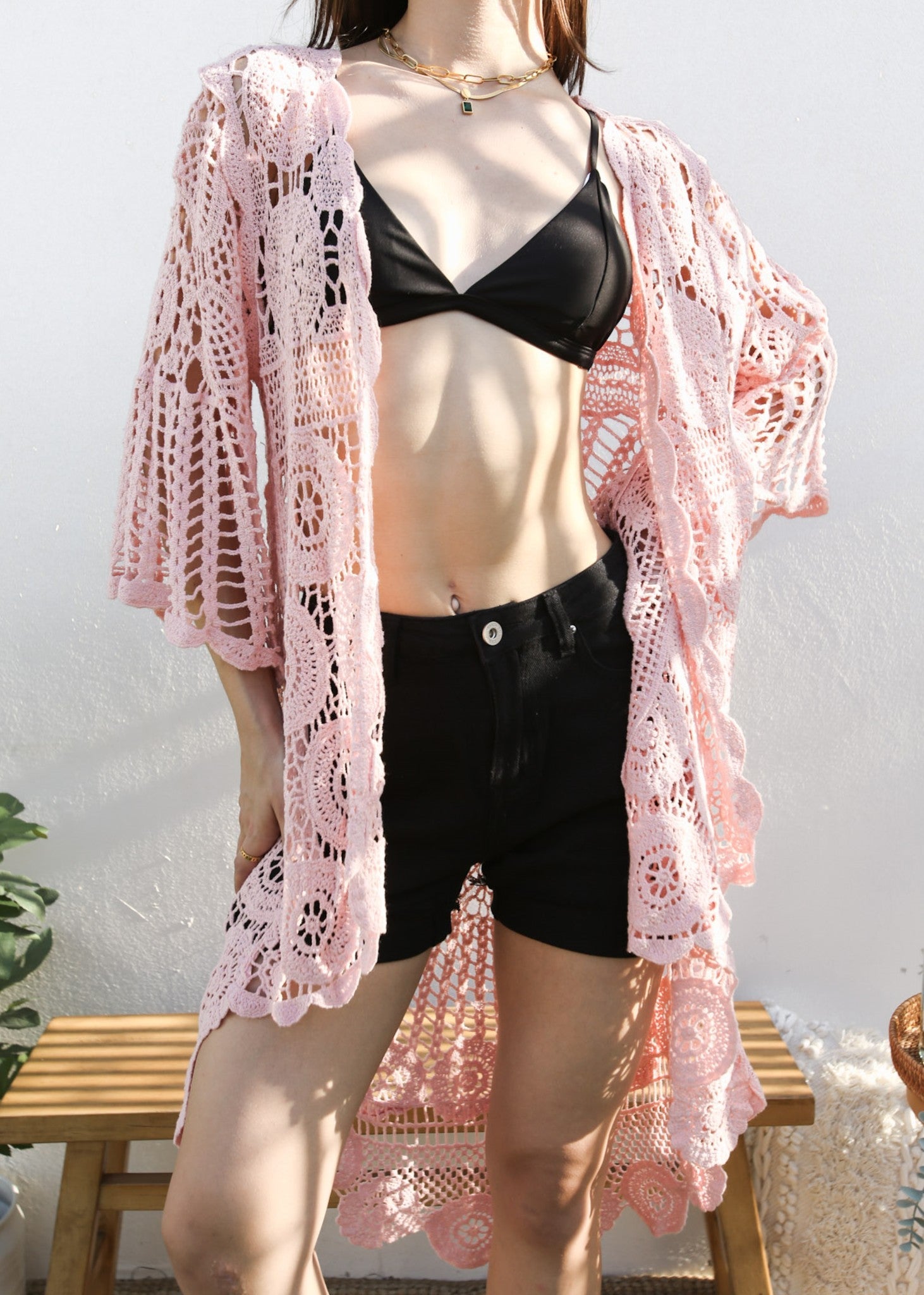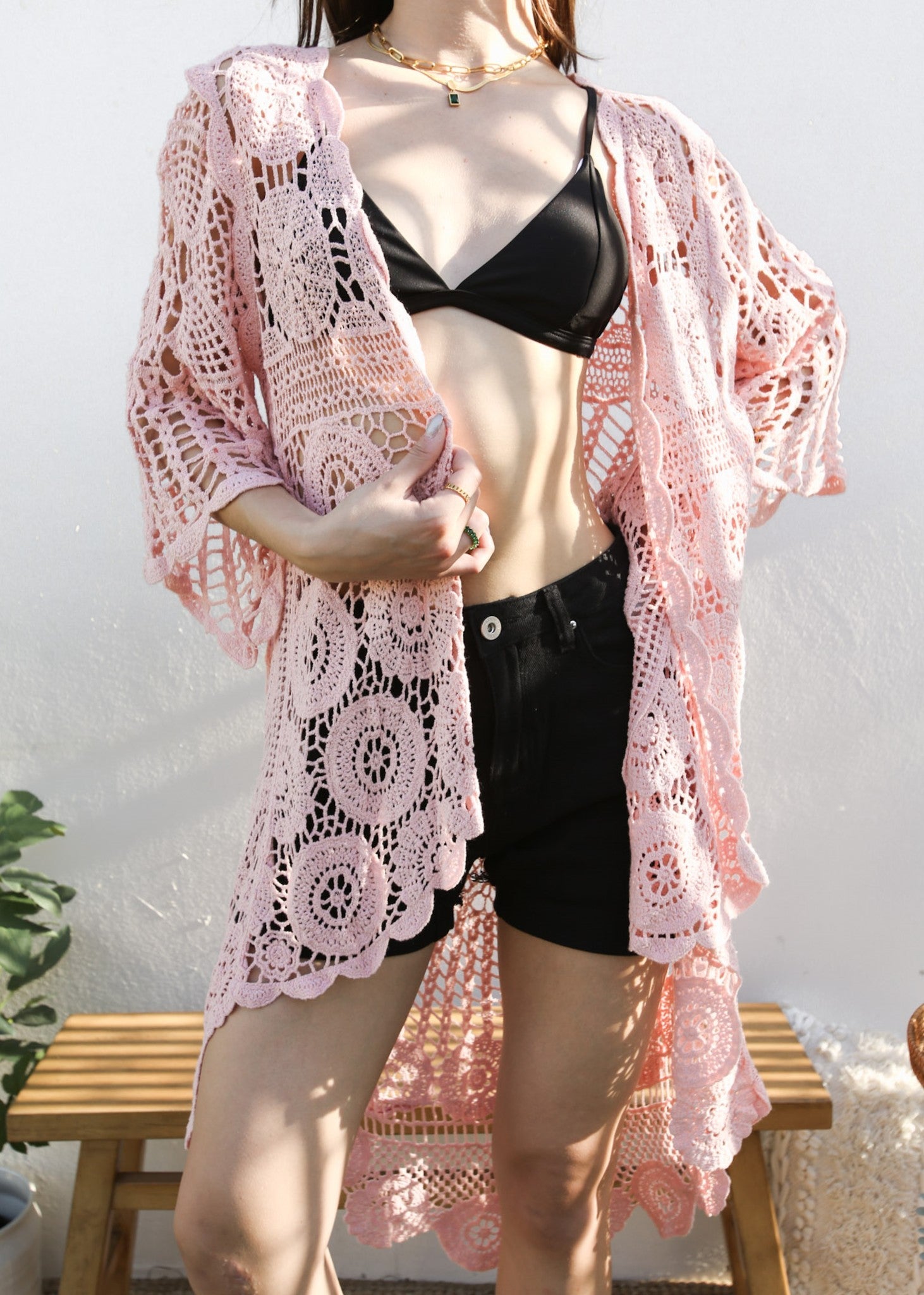 - UNIQUE DESIGN -- Lightweight open front short sleeve cover up cardigan featuring cut out flower lace design.This bohemian, floral detailed style cardigan featuring an asymmetric hem design, large arm cutouts and loose oversized fit is flattering for all body types.