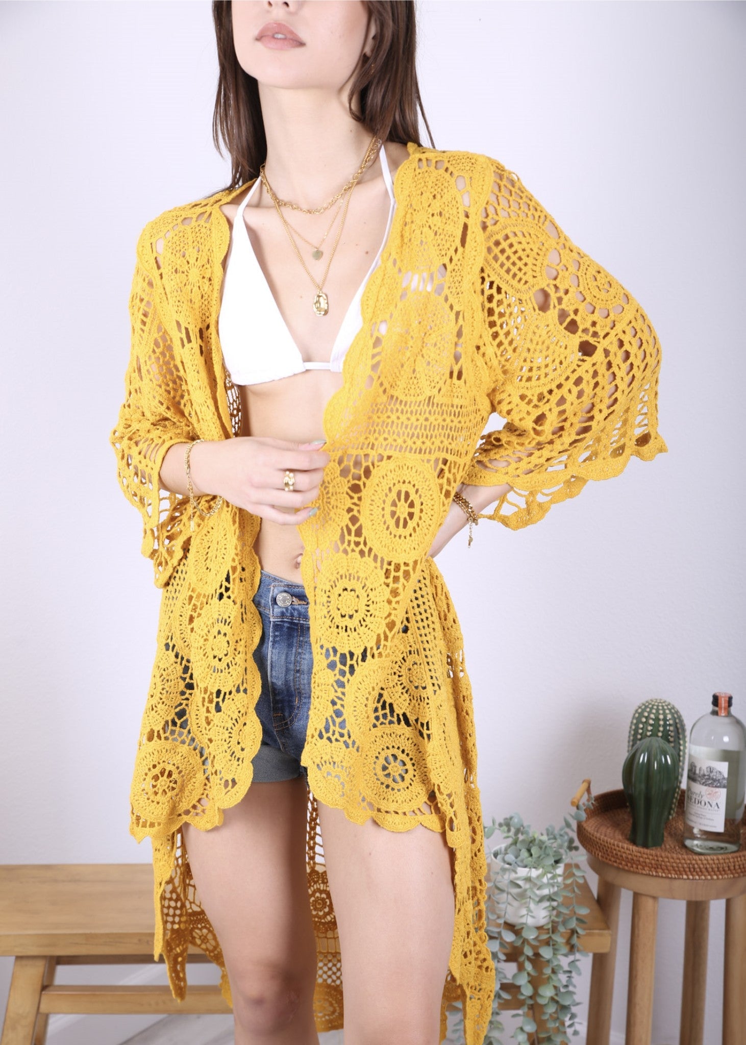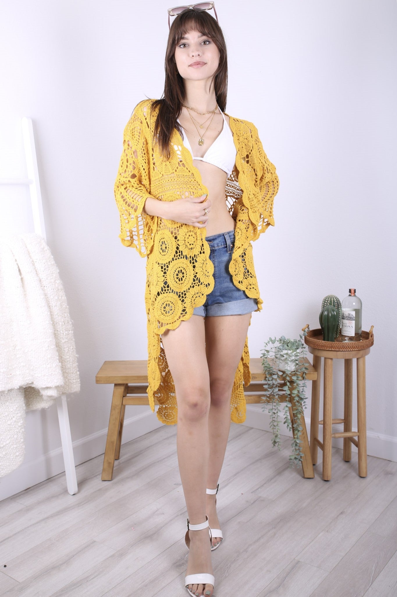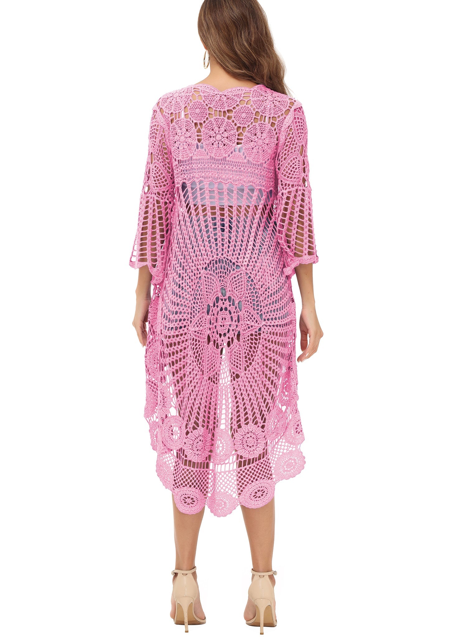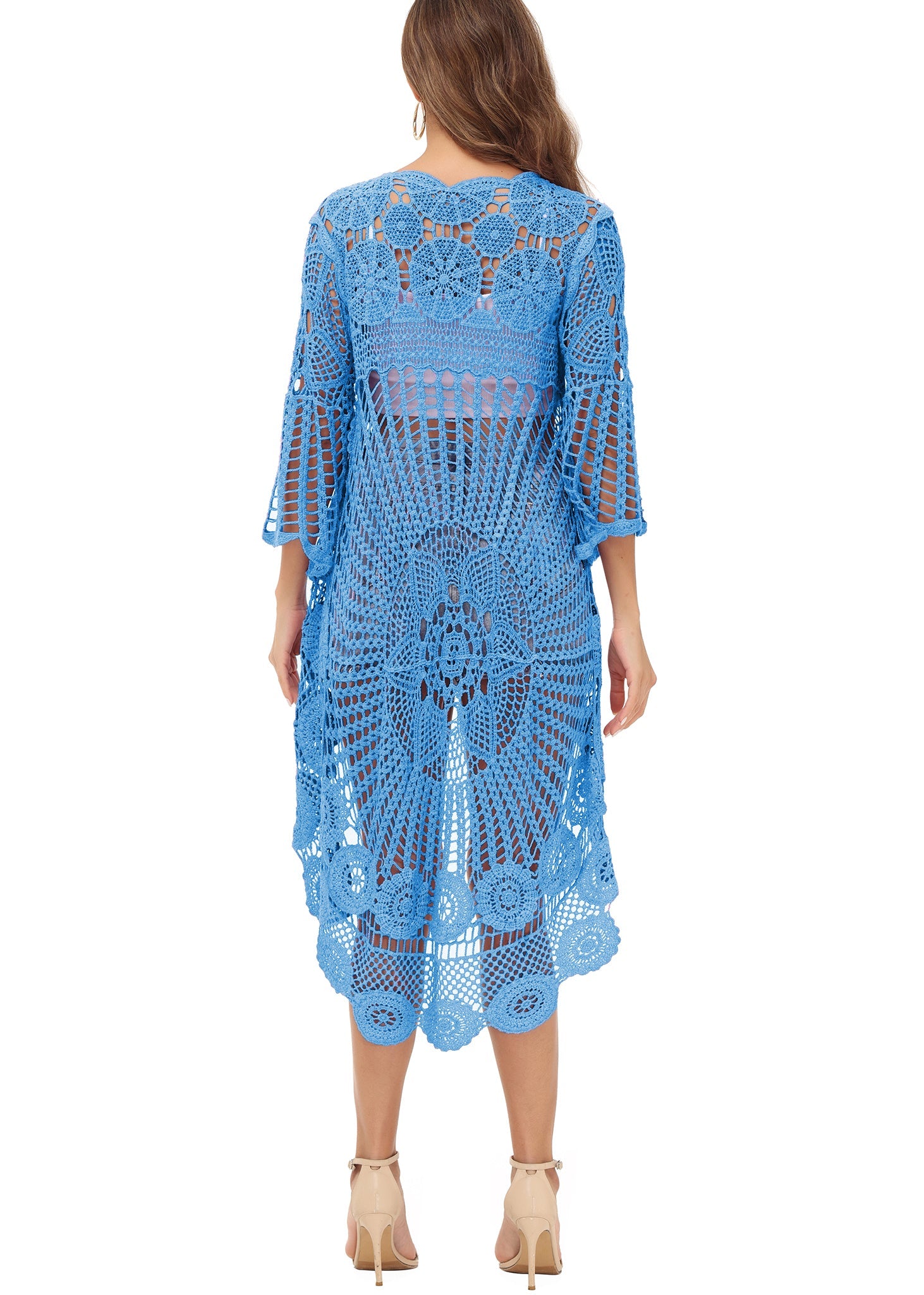 - UNIQUE DESIGN -- Lightweight open front short sleeve cover up cardigan featuring cut out flower lace design.This bohemian, floral detailed style cardigan featuring an asymmetric hem design, large arm cutouts and loose oversized fit is flattering for all body types.