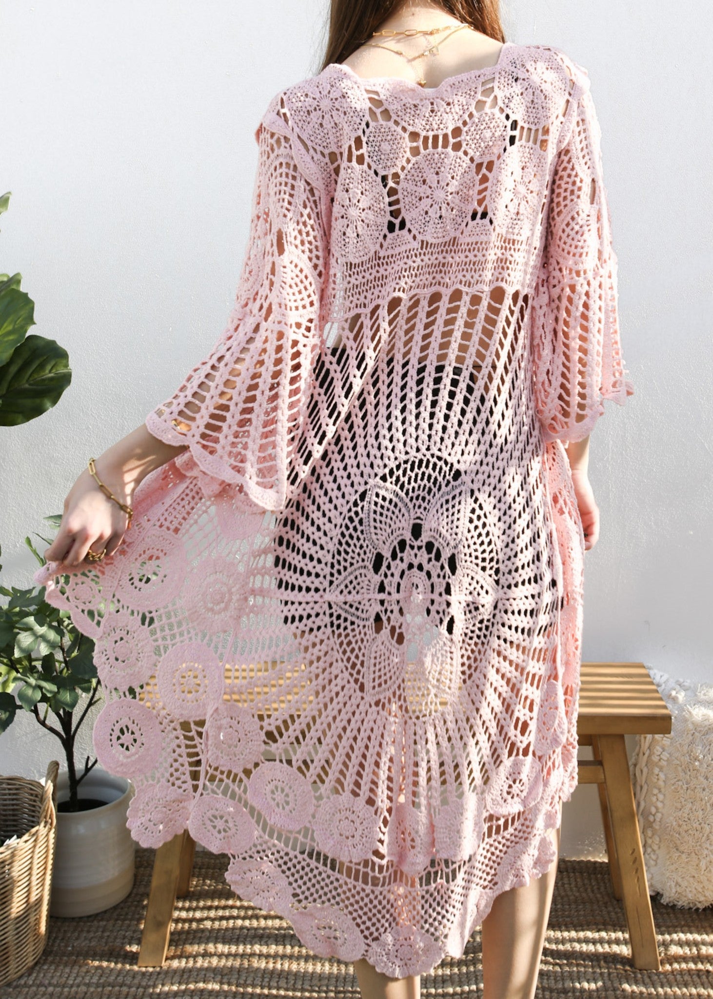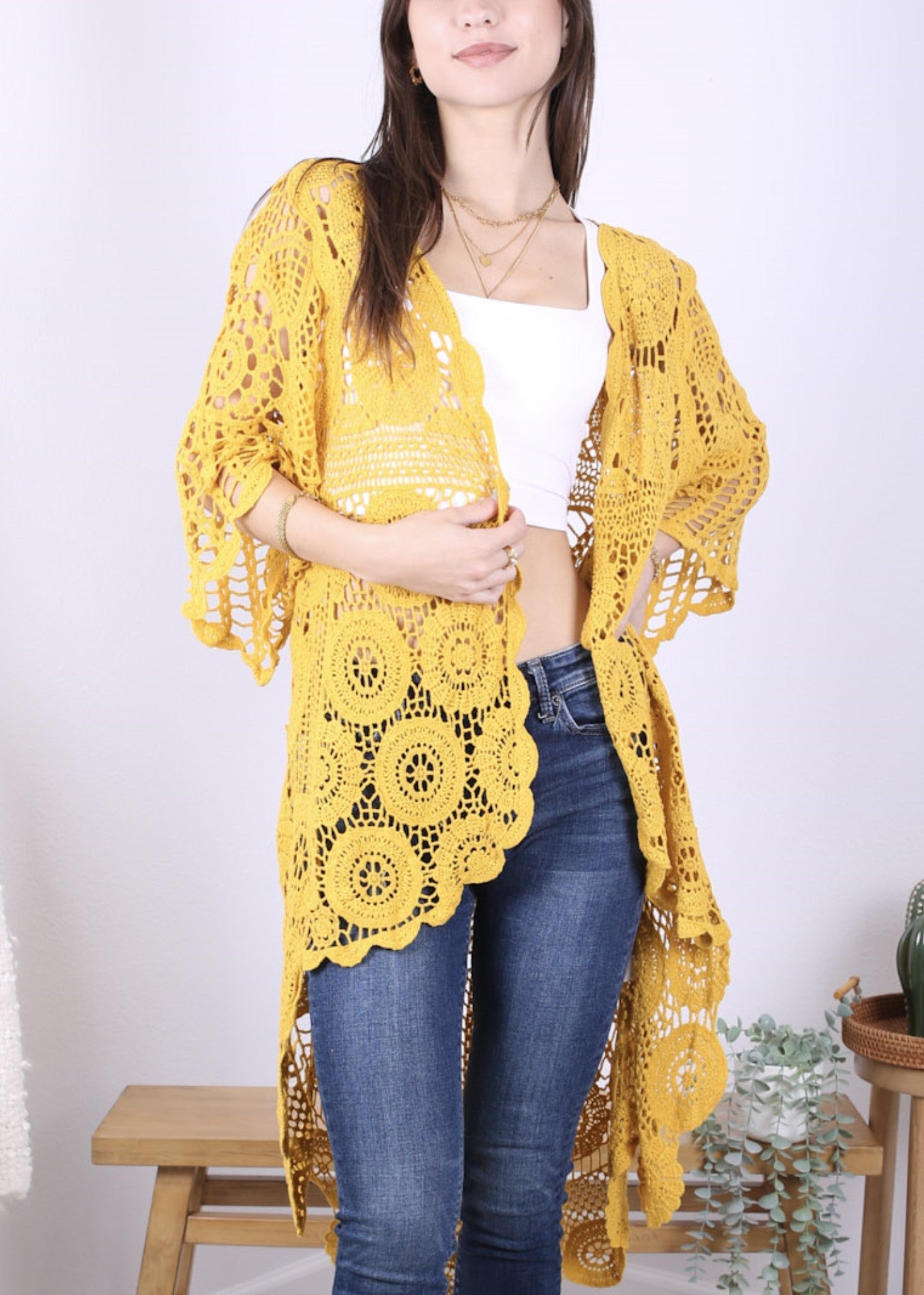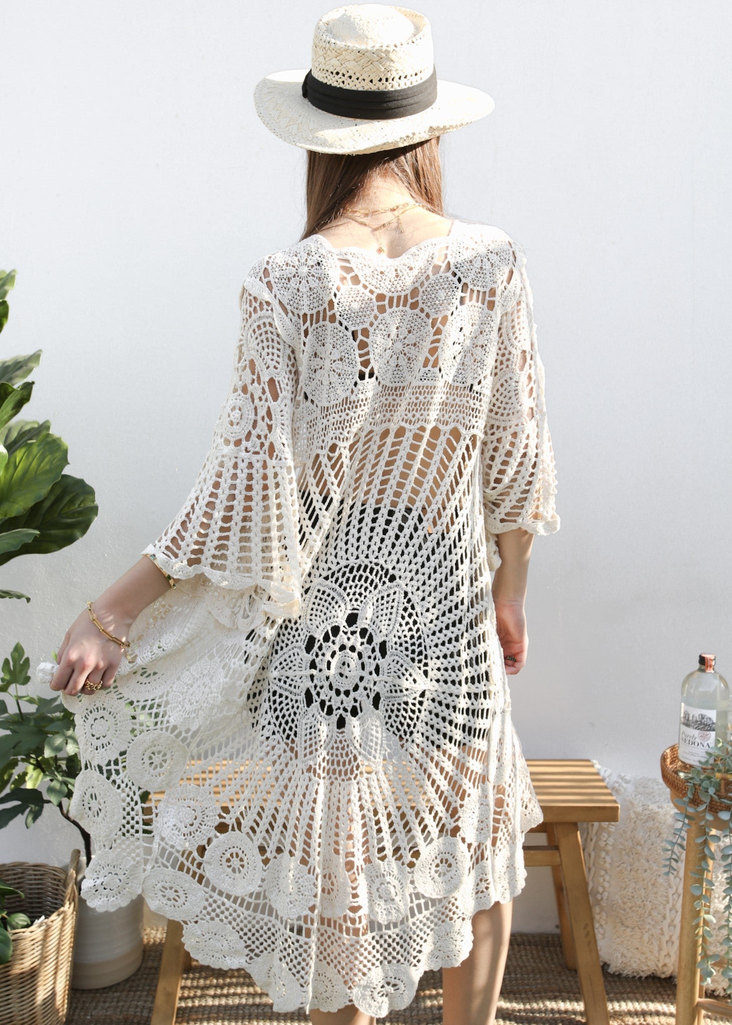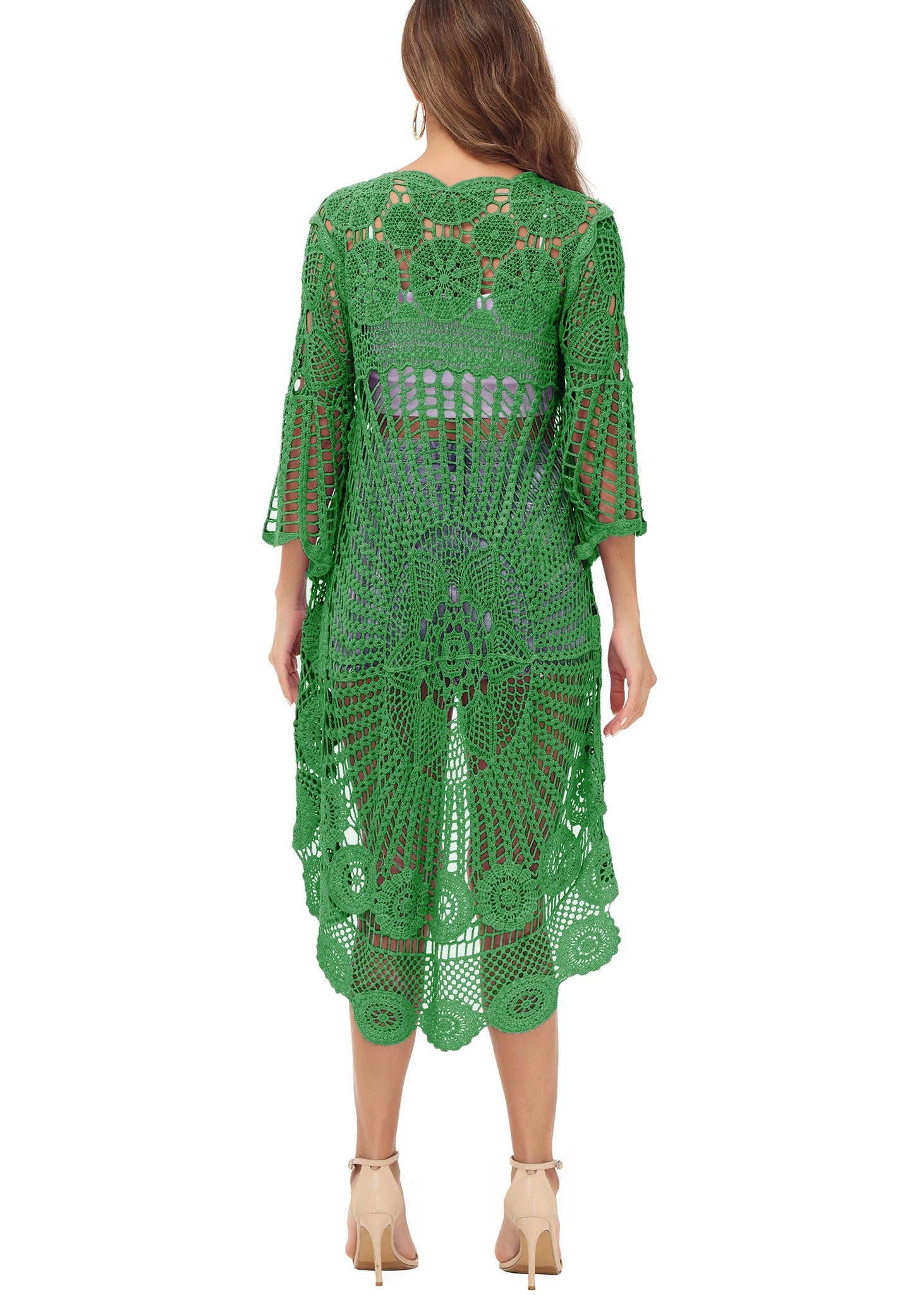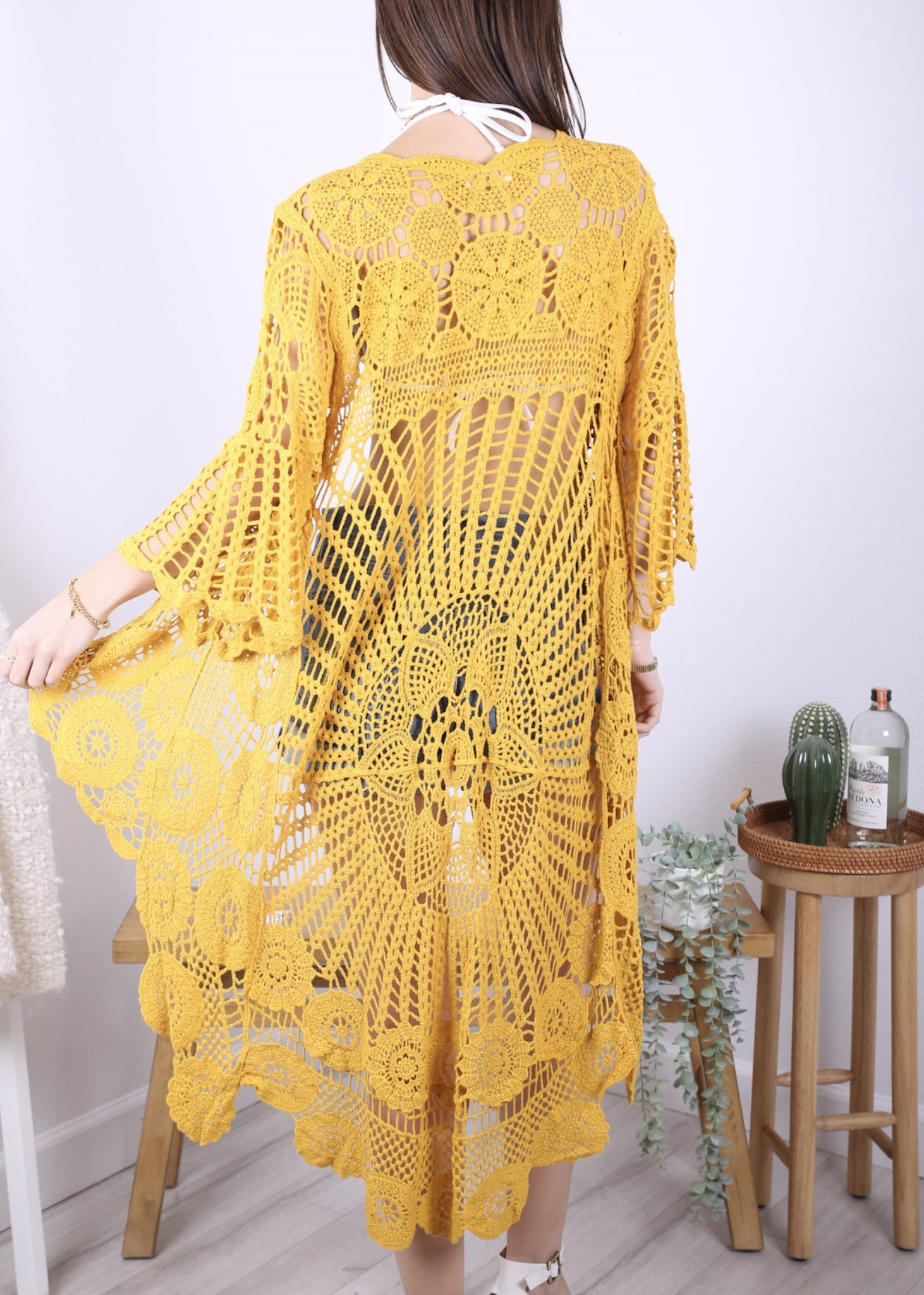 - UNIQUE DESIGN -- Lightweight open front short sleeve cover up cardigan featuring cut out flower lace design.This bohemian, floral detailed style cardigan featuring an asymmetric hem design, large arm cutouts and loose oversized fit is flattering for all body types.