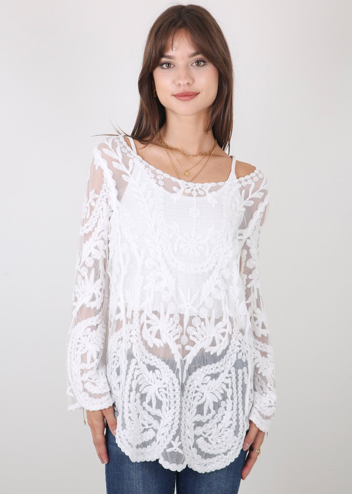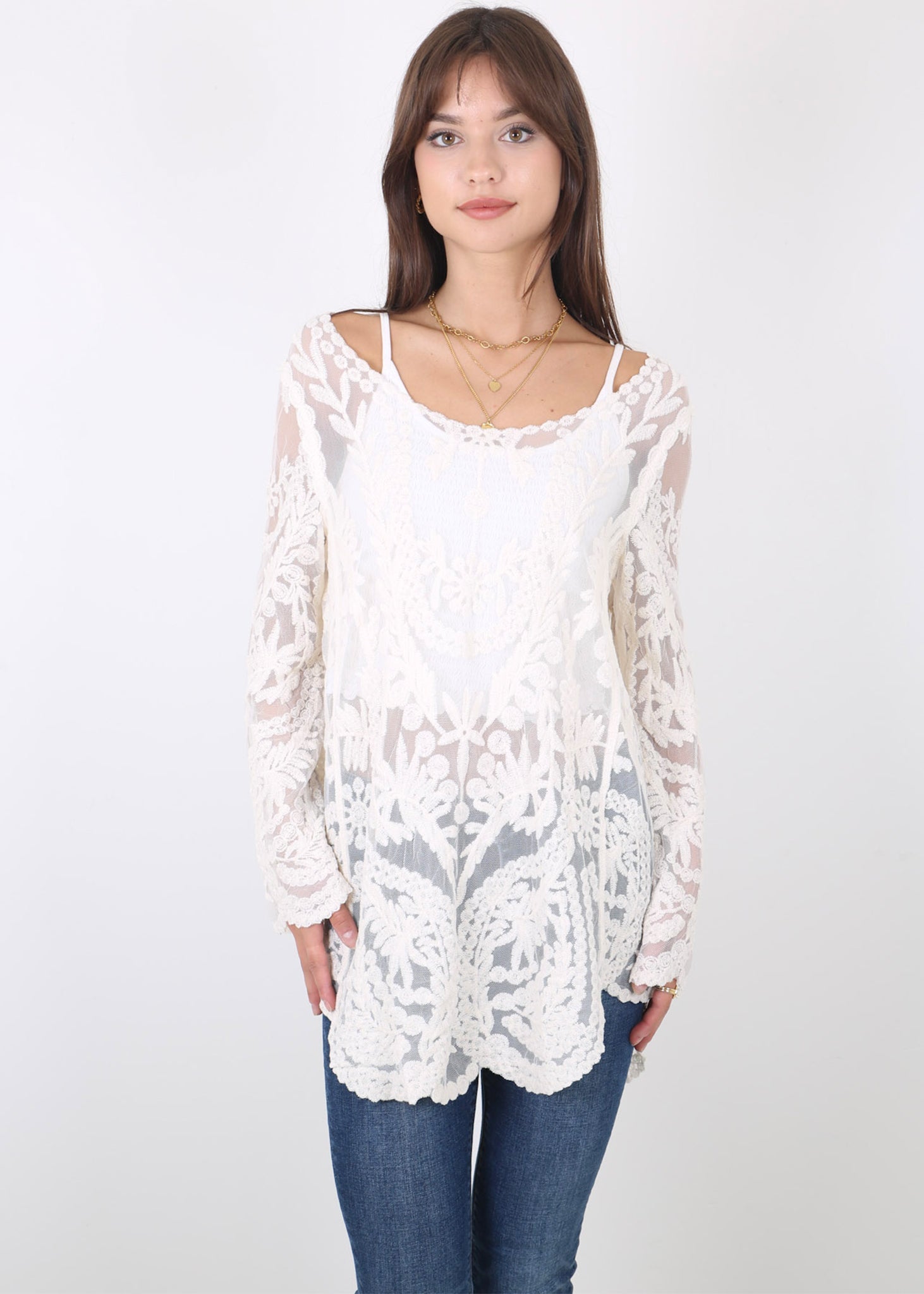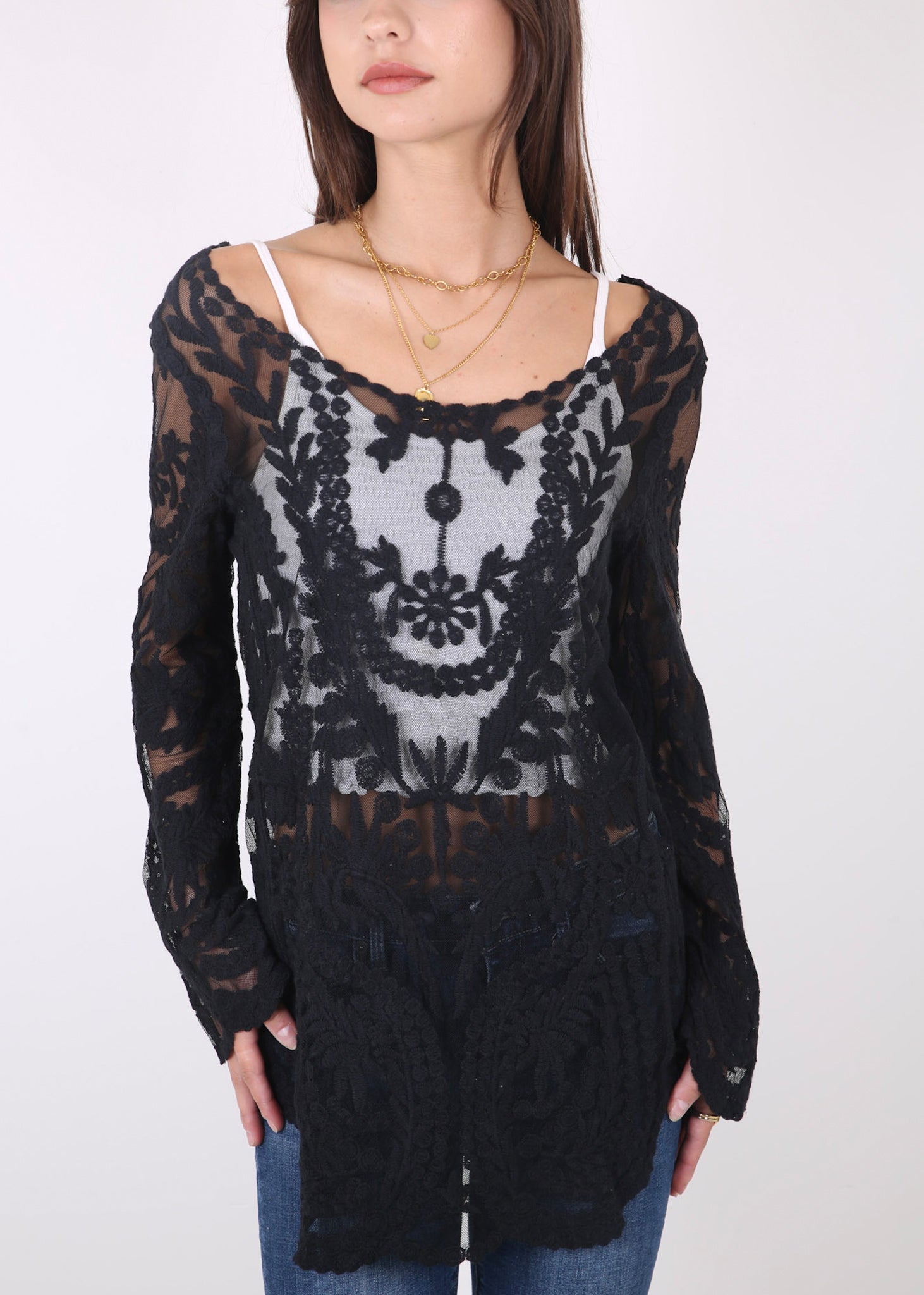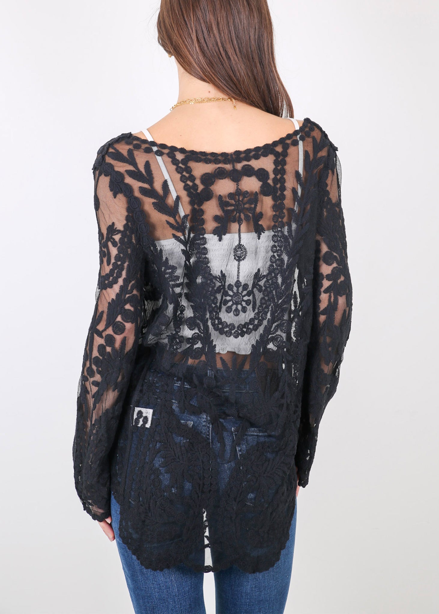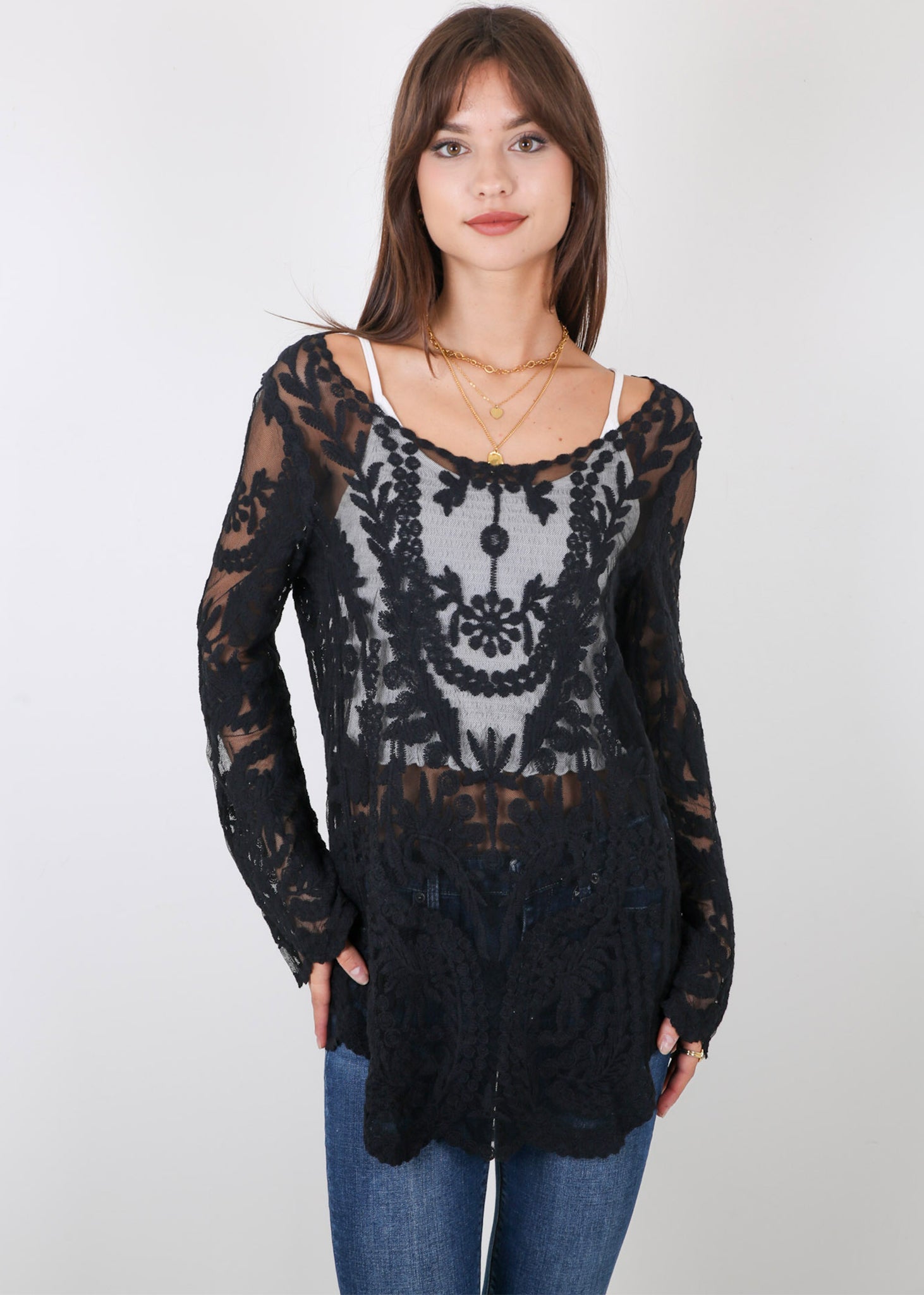 MATERIAL. Made of soft breathable and lightweight fabric, very comfortable, slight stretch. FEATURE. Crochet, contrast lace plunging cover-up, hollow out, v neck, 3/4 sleeve, mesh, mini length, See Through, embroidered romantic leafy floral design, hem flowy babydoll beach dress.
