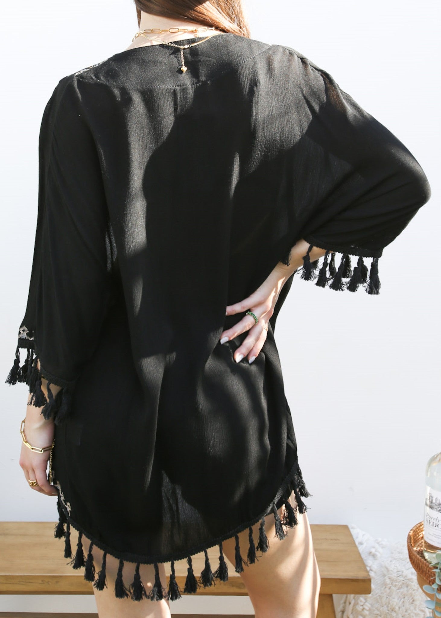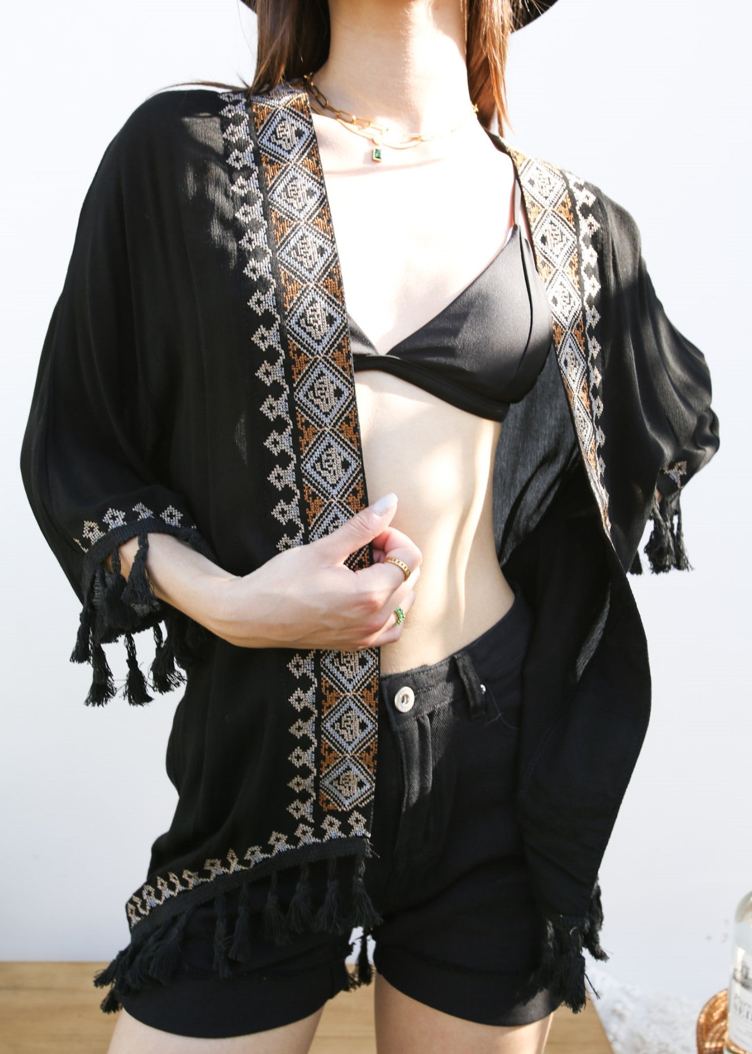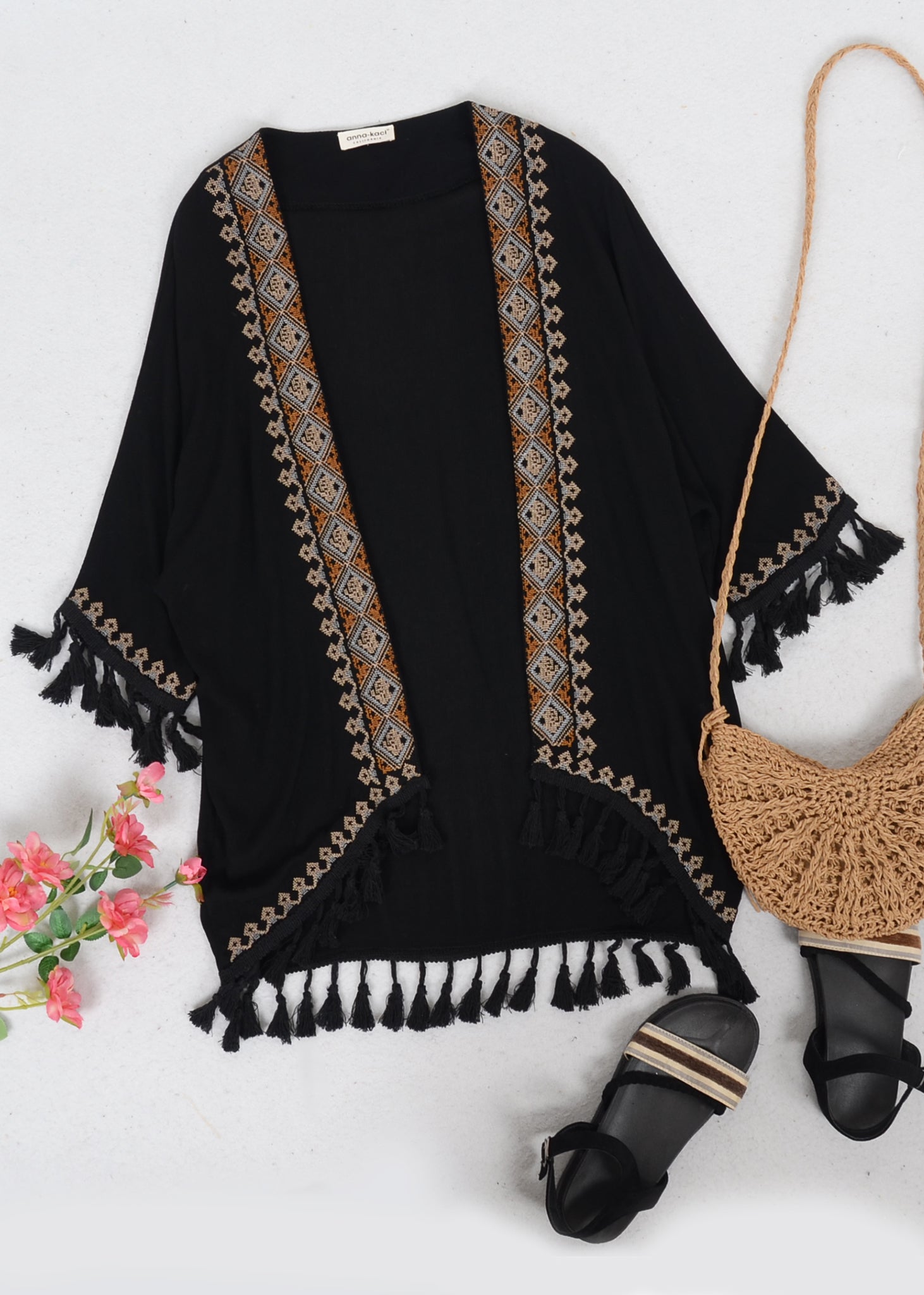 - Stunning Bohemian Style - Our oversized kimono cardigan features a V-neck, loose fit, long sleeves, ethnic design, making it a standout piece. The tassel hem adds a playful touch to this beautiful cover-up. It sways with your every move, giving you a carefree boho vibe.