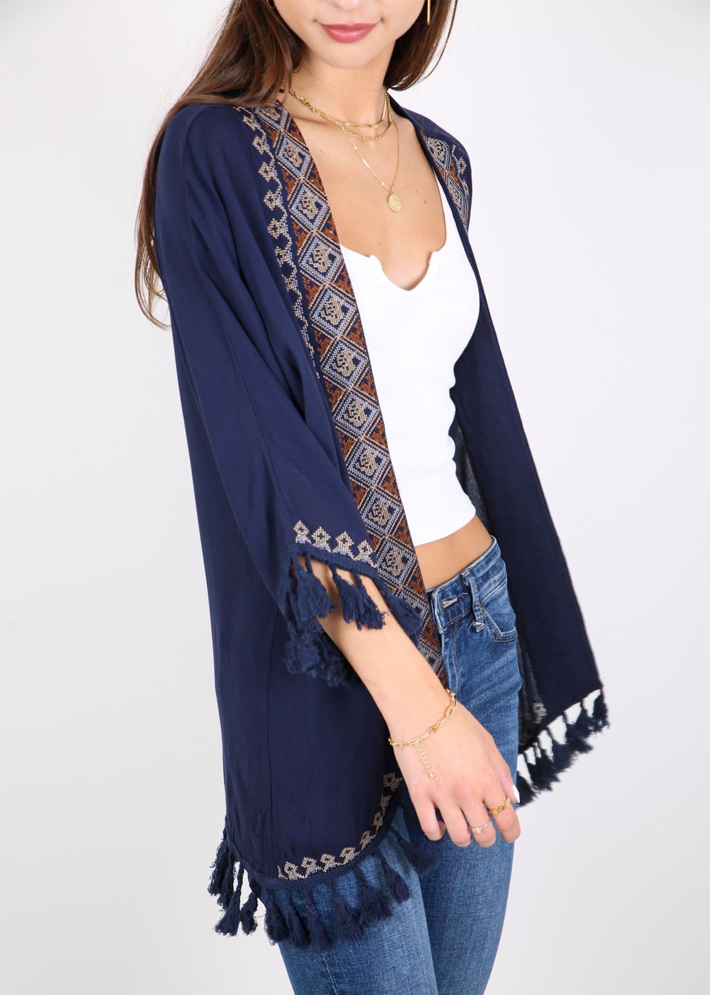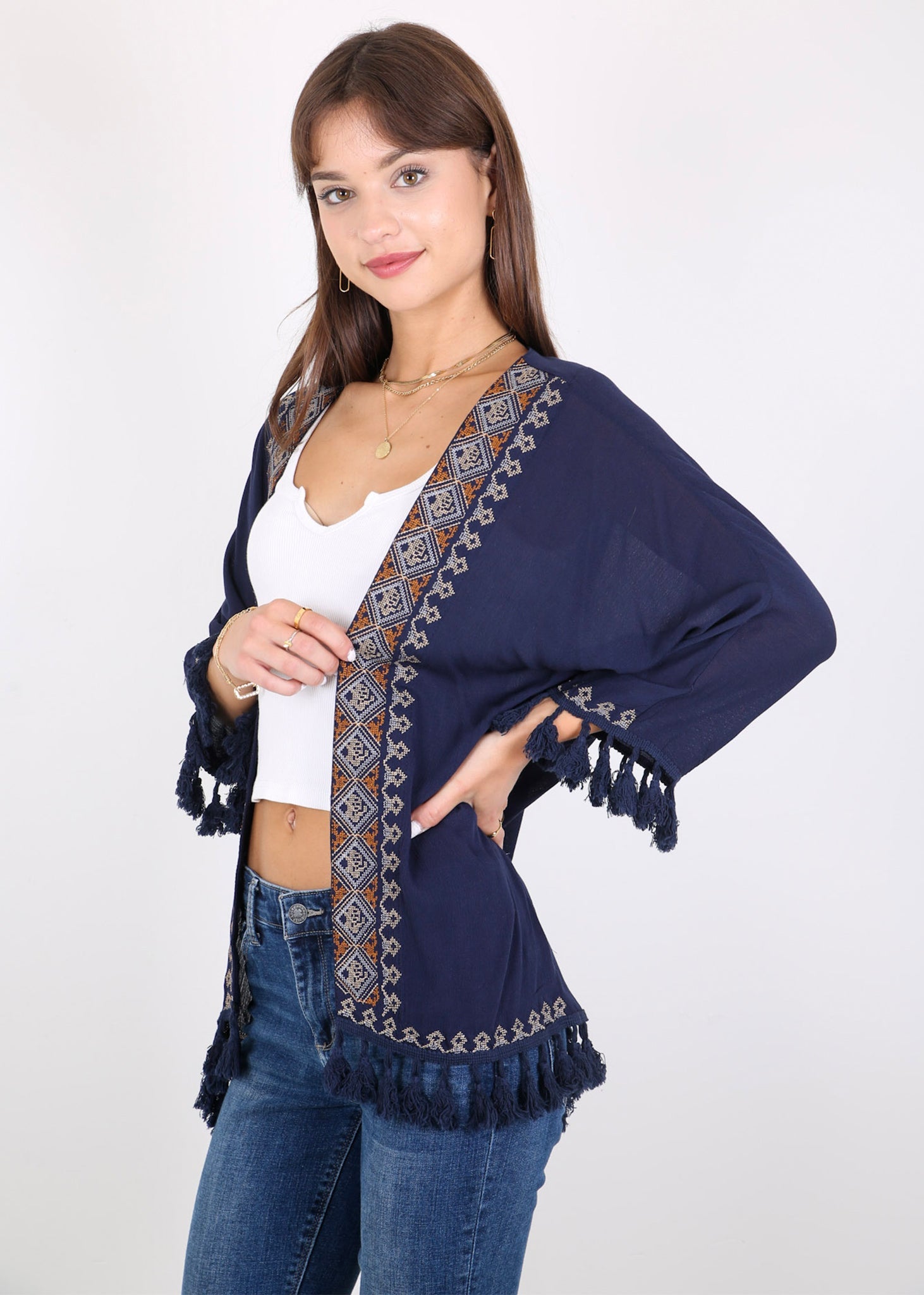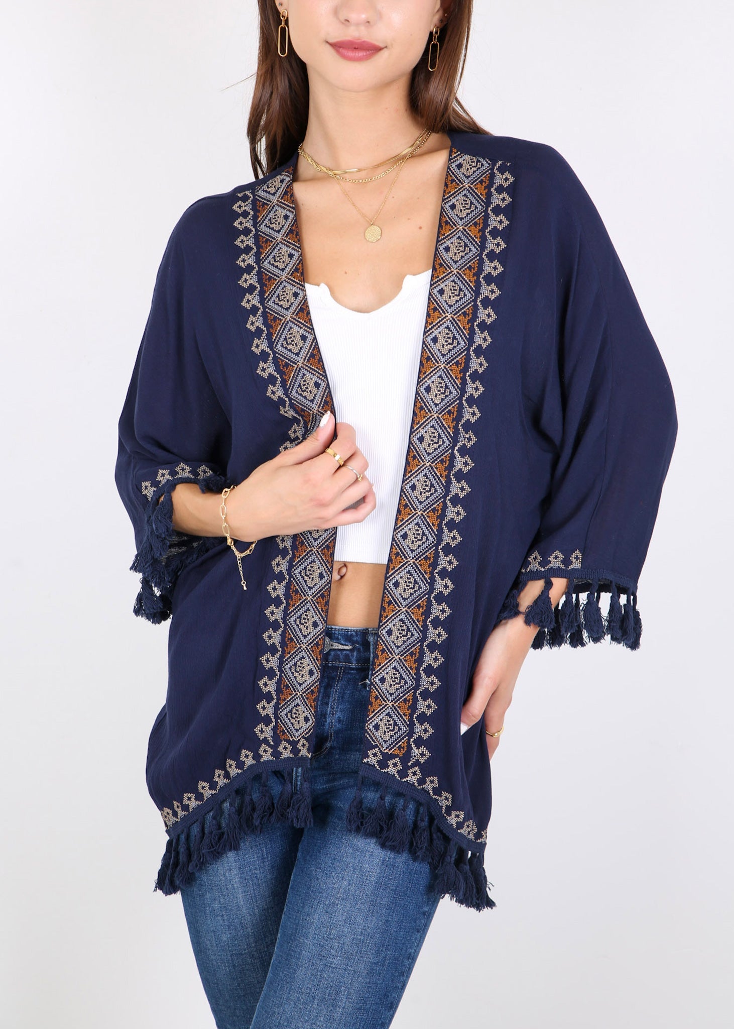 - Stunning Bohemian Style - Our oversized kimono cardigan features a V-neck, loose fit, long sleeves, ethnic design, making it a standout piece. The tassel hem adds a playful touch to this beautiful cover-up. It sways with your every move, giving you a carefree boho vibe.