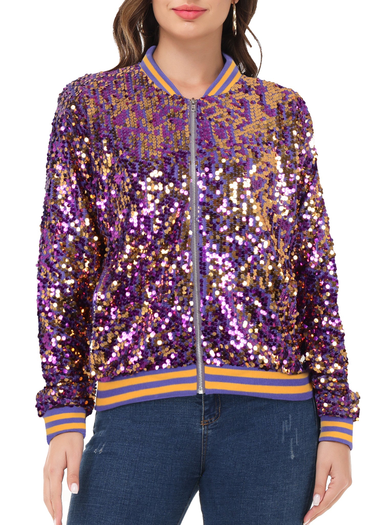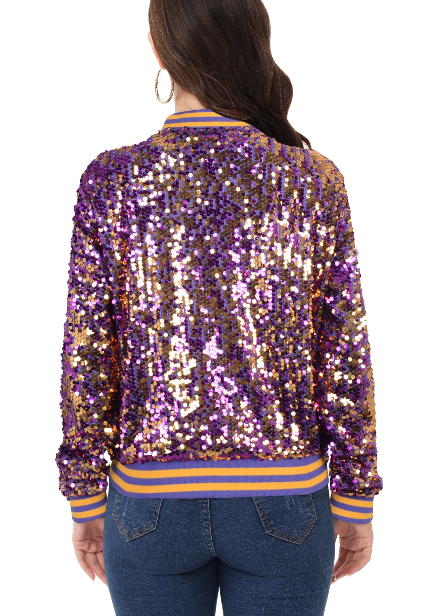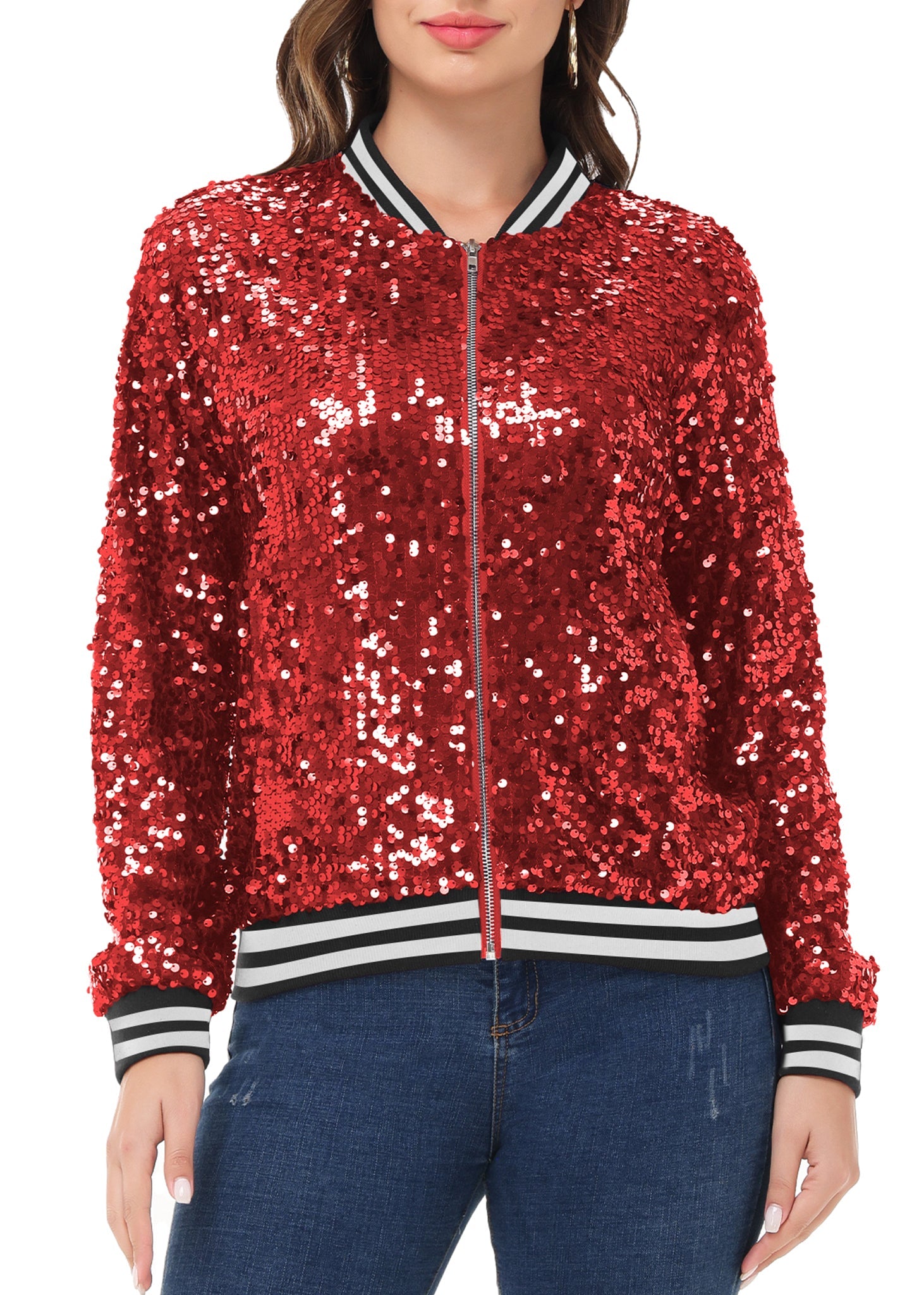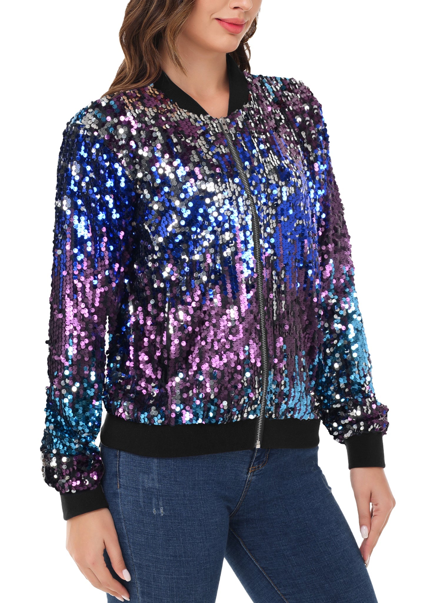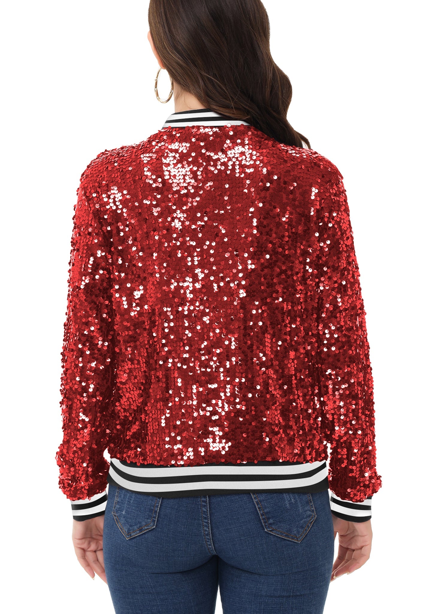 Anna-Kaci Womens Sequin Jacket Sparkle Long Sleeve Front Zip Casual Blazer Bomber Jacket With Pockets