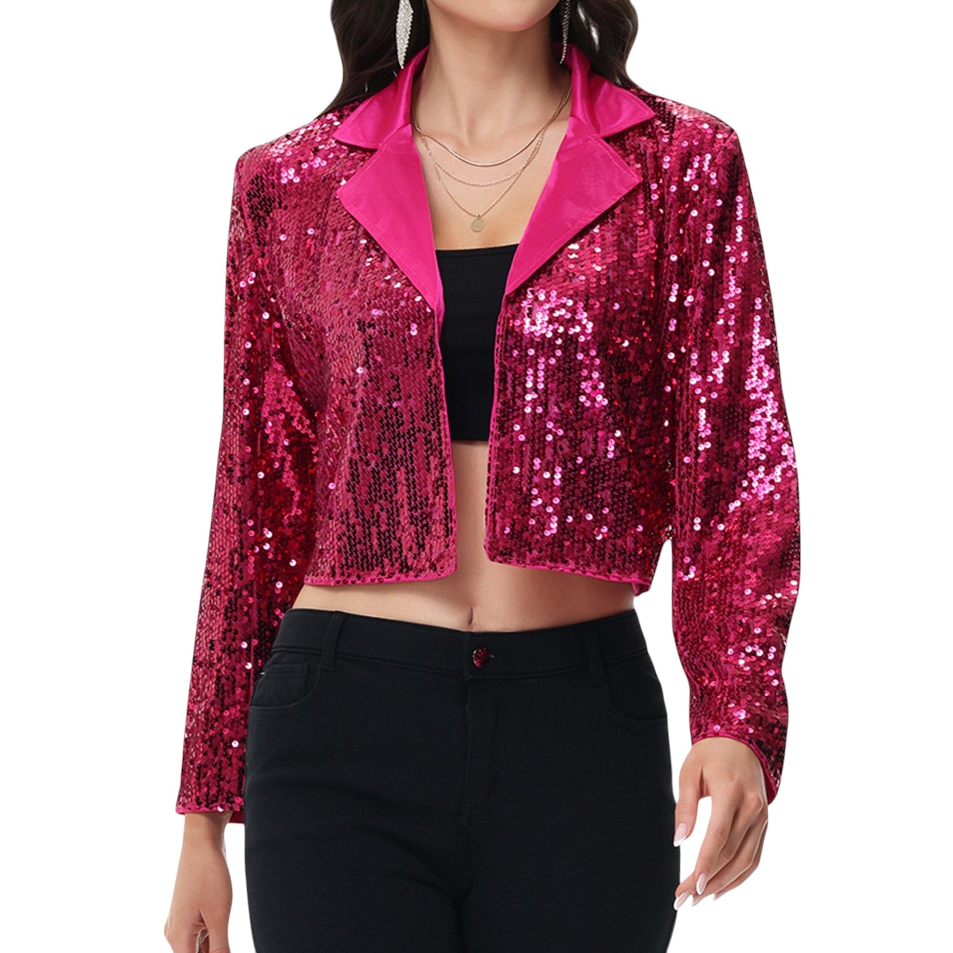 Sequin Cropped Blazer Long Sleeve Sparkly Open Front Jacket